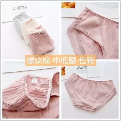Japanese sweet girl lace fat inner cotton simple basic simple European triangle low waist bag hip women's underwear F