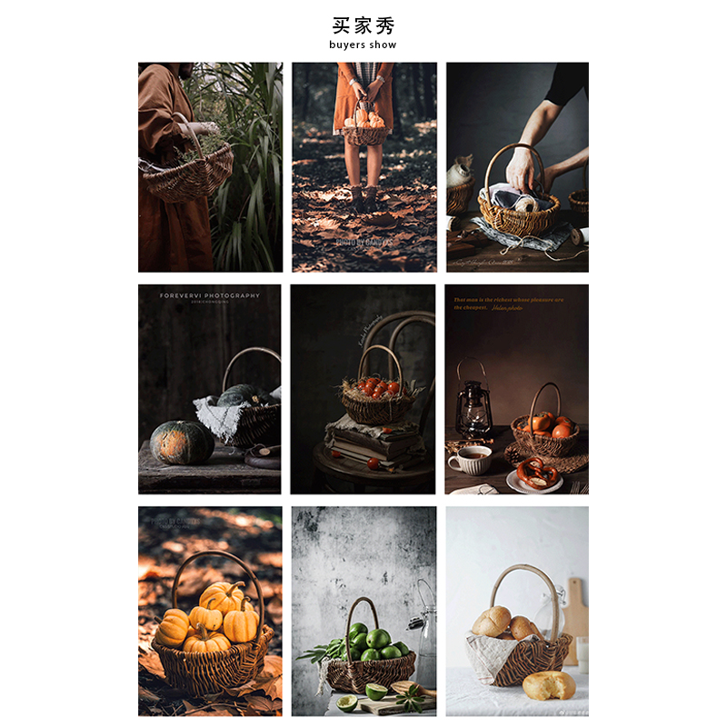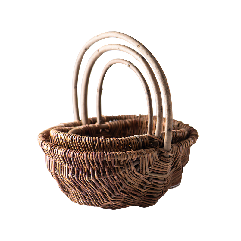Vintage country style handmade willow handle basket three-piece set home decoration flower basket fruit bread photography props