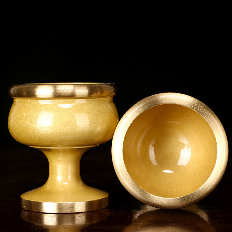Yuantong Buddha pure copper plain face wine glass Household God of wealth supply cup God of Wealth Guan Gongxian Family wine glass Buddha front water supply cup