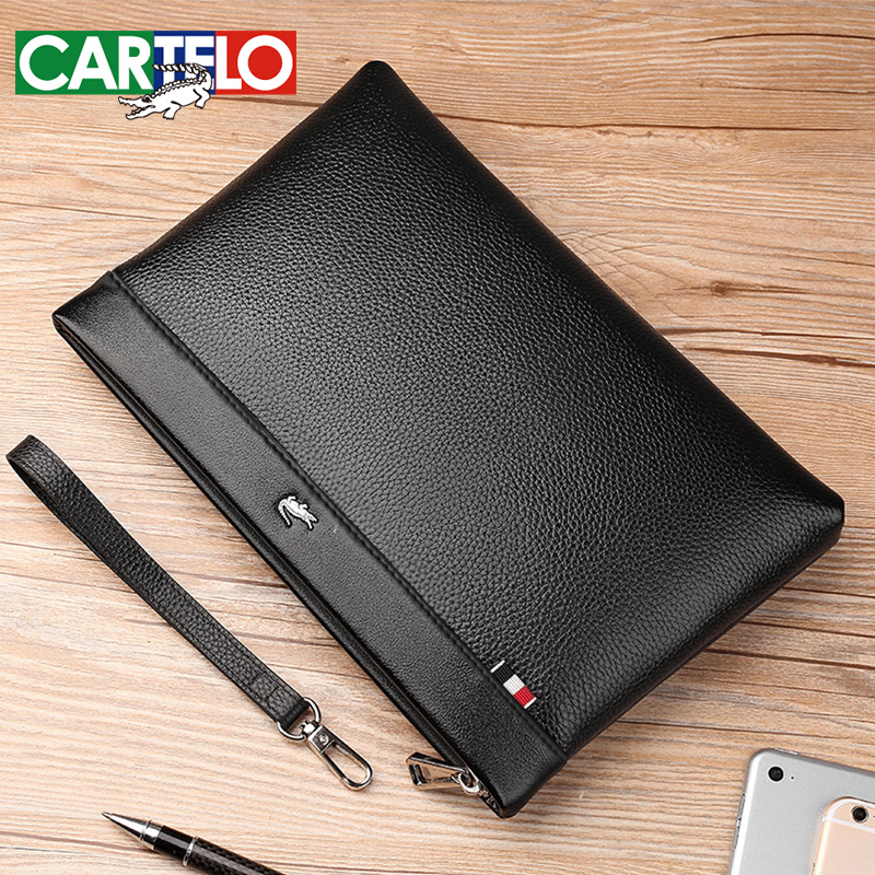 Cartelo crocodile men's handbag 2018 new men's trendy leather casual clutch bag cowhide envelope bag men's bag