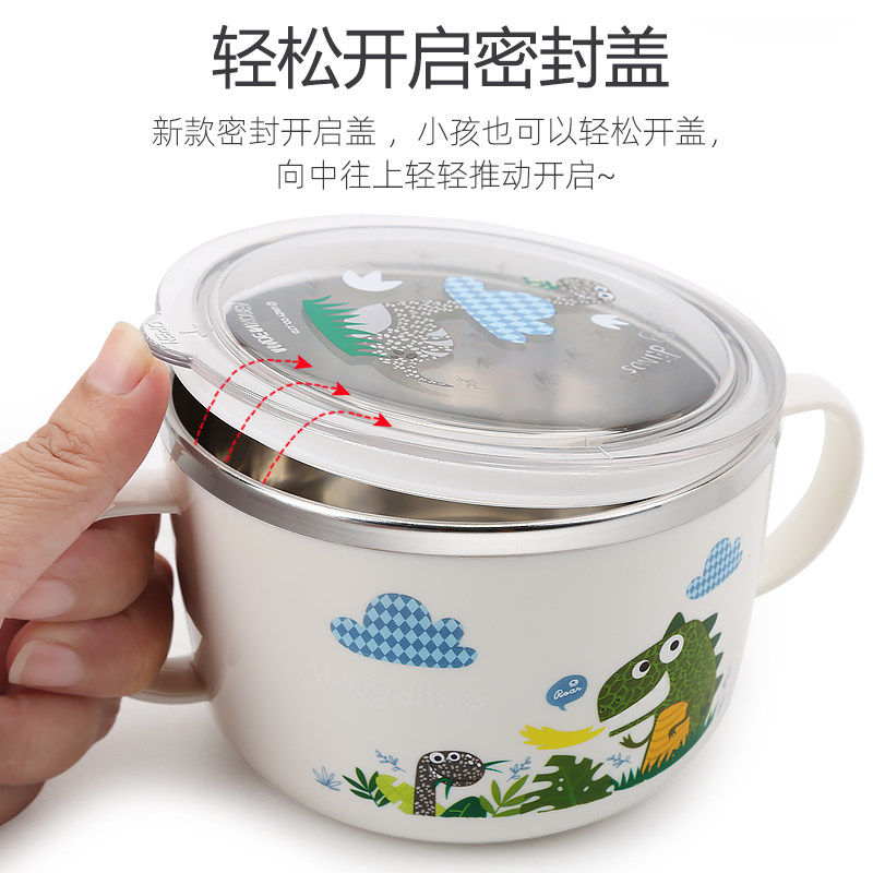 316 stainless steel rice bowl Twin Ear Soup Bowl Elementary School Kids Baby Vice Food Bowl With Lid Handle Bowl Cute
