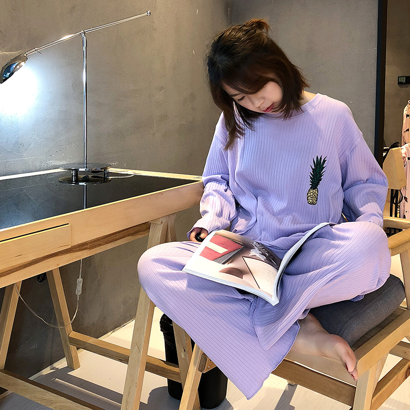 Pineapple Cotton long sleeve thin cute student Han edition Large size autumn and winter home suit