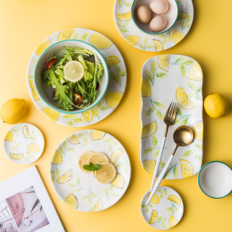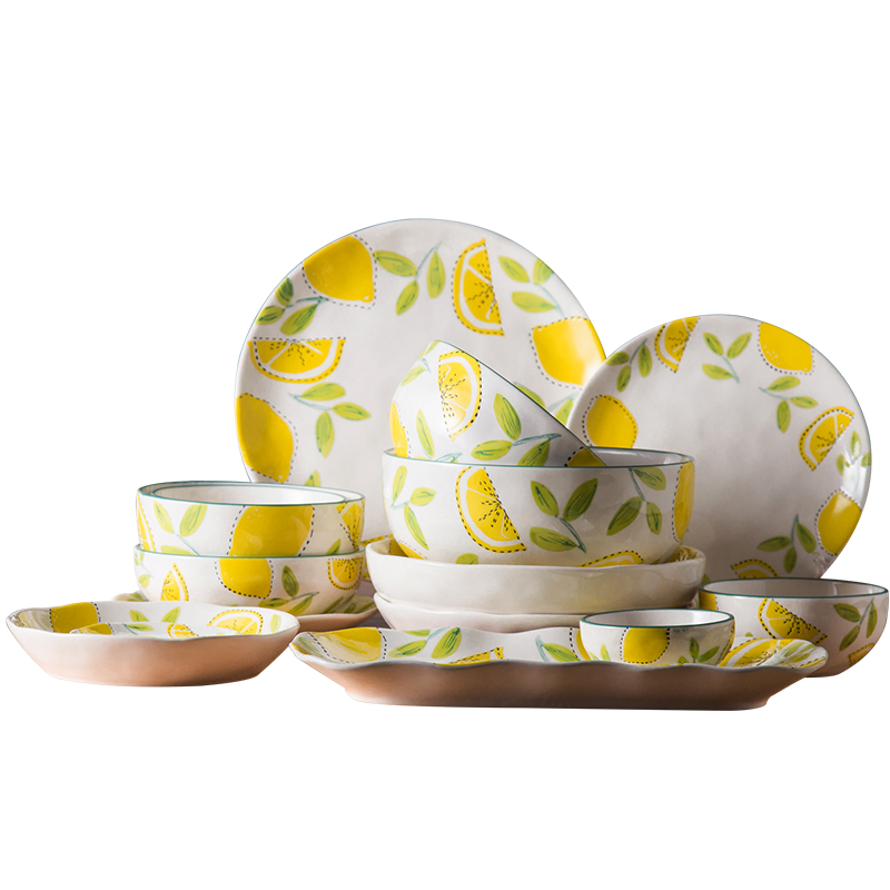Hufu Chinese Dishes Home Suit 4 People Small Fresh Lemon Brief About Eating Bowls Chopsticks Tray Cutlery Porcelain Combination