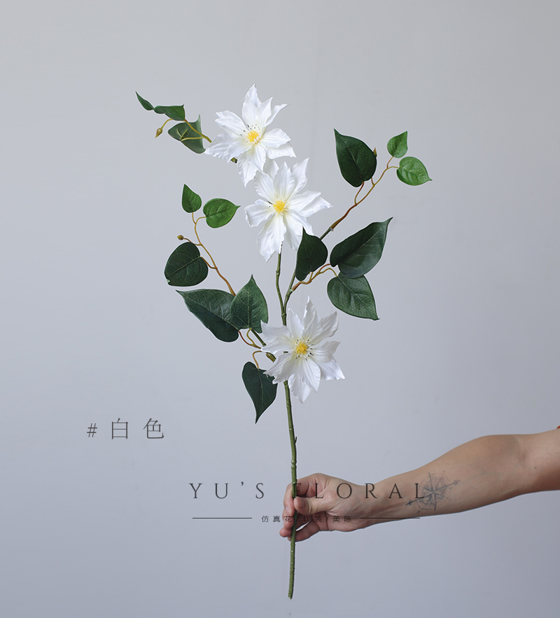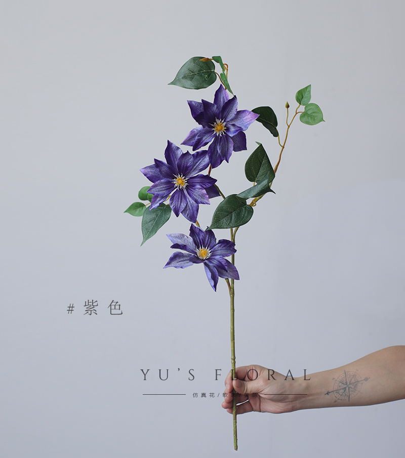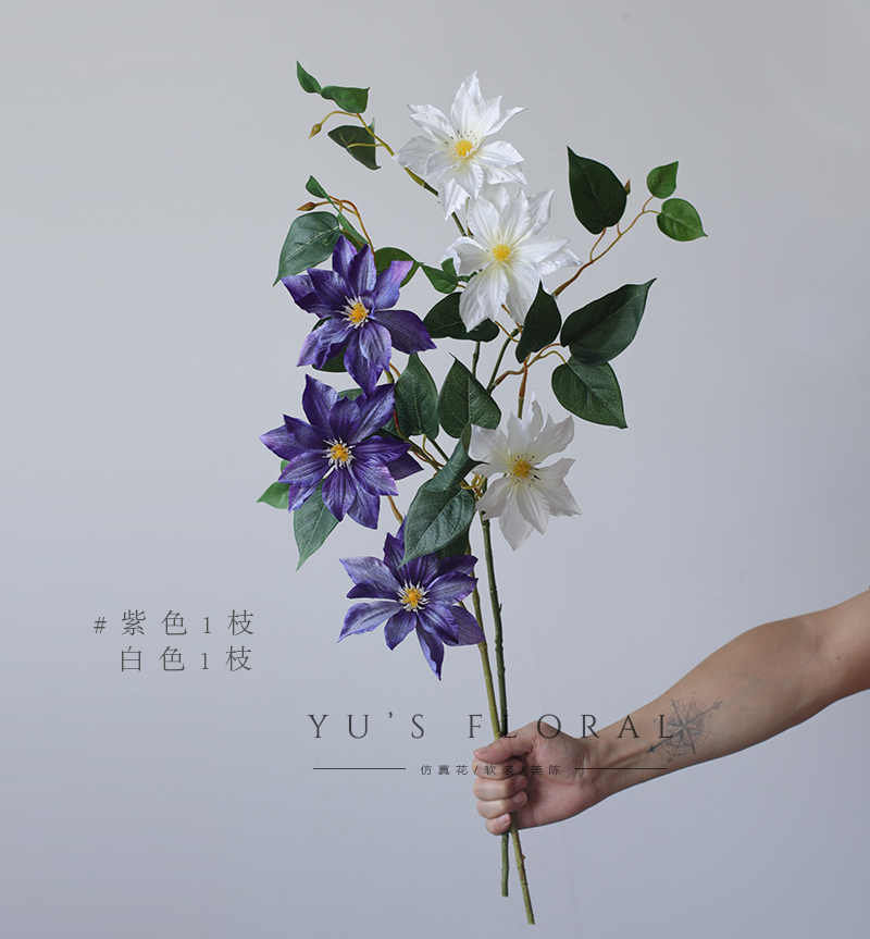 Simulation flower double clematis purple single branch fake flower indoor floral decoration wedding photography props