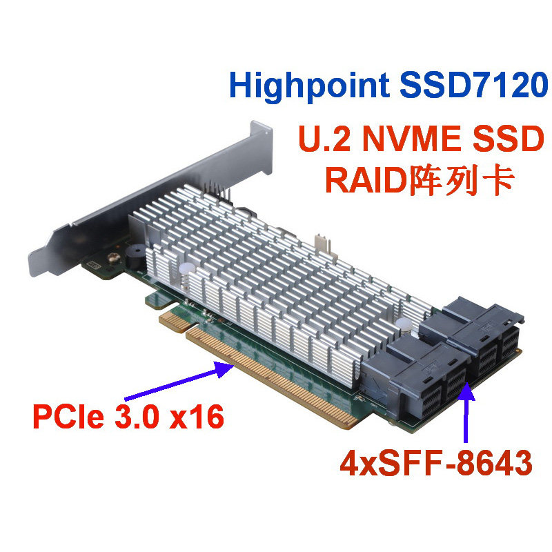 Highpoint Rocket SSD7120 U 2 NVMe SSD PCIe3 0x16 RAID disk array card