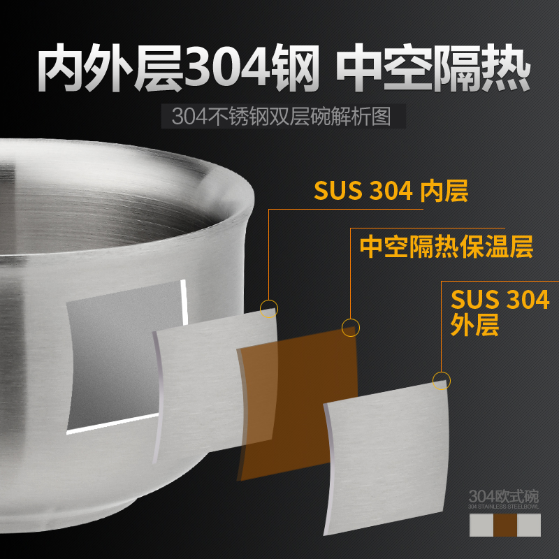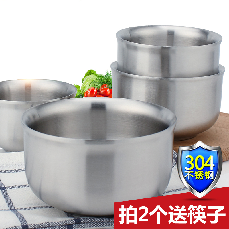 304 stainless steel bowl household double-layer insulation bowl children's adult rice bowl rice simple breakfast after school surveying and mapping