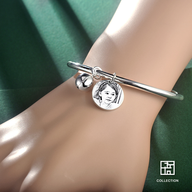 Custom mother and child baby 925 silver bracelet female male child handring opening lettering photo bracelet set to make