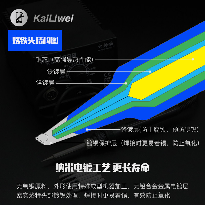 Electric soldering iron head Loc universal chrome iron head pointed flat 936 internal heat constant temperature welding table accessories pure copper cutter head