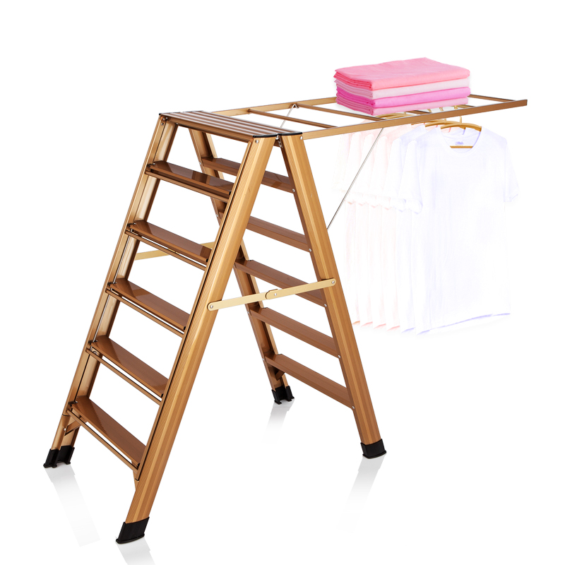 Good wife multi-functional floor drying rack indoor and outdoor folding clothes rack home thickened aluminum alloy dual-use ladder