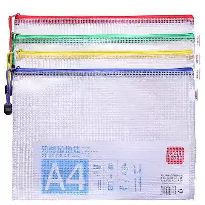 Del A4 grid bag waterproof zipper bag 5654 storage bag transparent plastic pull edge information bag