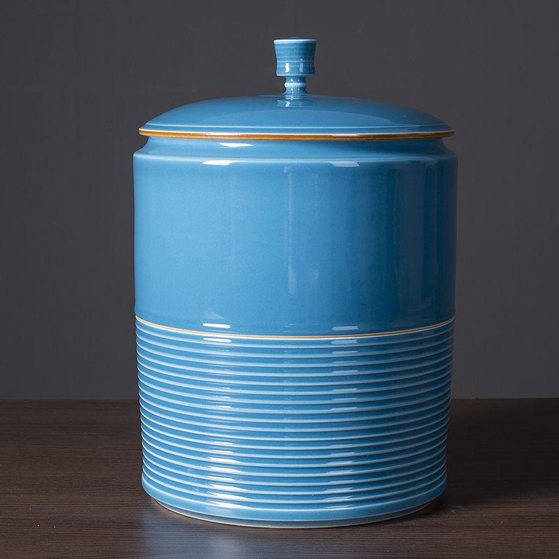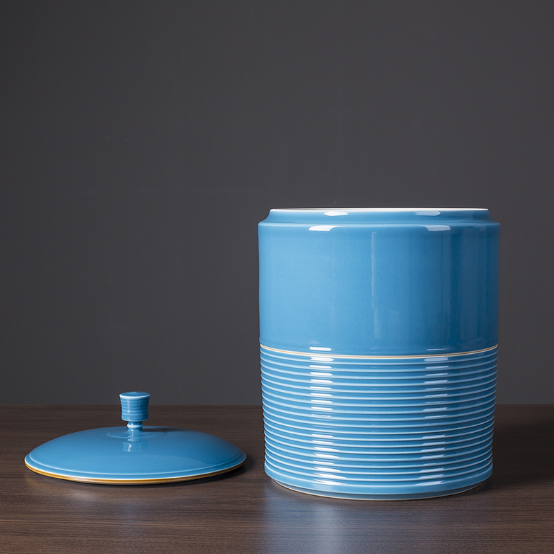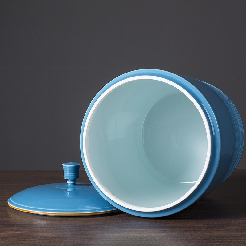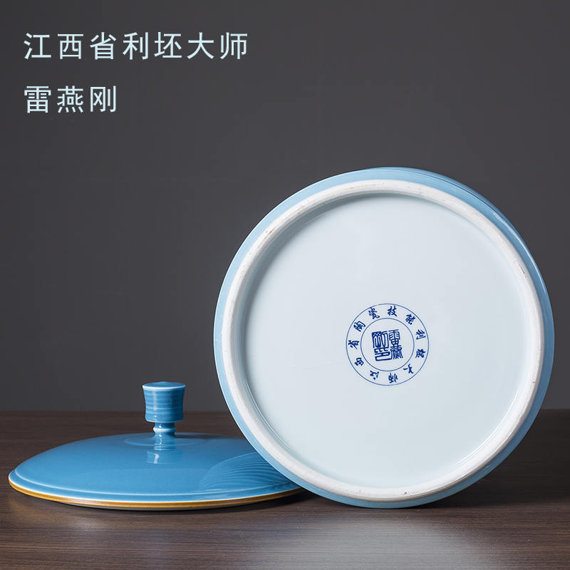 Jingdezhen handmade ceramic rice cylinder rice pail with lid large tea leaf jars 25 catty damp and insect proof sealed storage jar