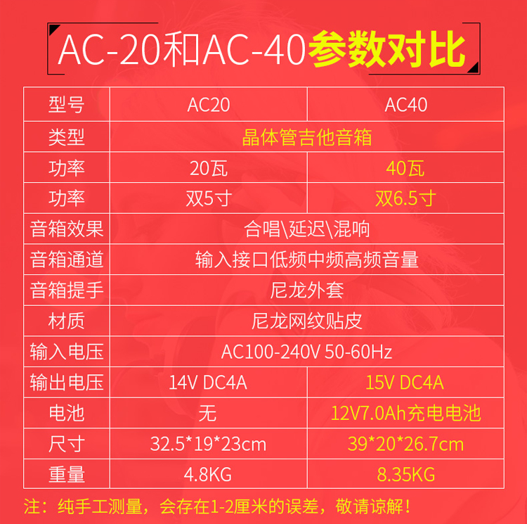 AC20 Non-charging 20WAC40 Chargeable Black 40WAC40 Chargeable Orange 40W