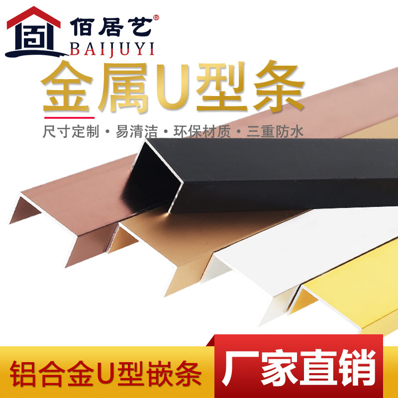 Aluminum alloy U-shaped groove titanium gold bar ceiling metal decorative line titanium alloy background wall edge pressing strip molding line