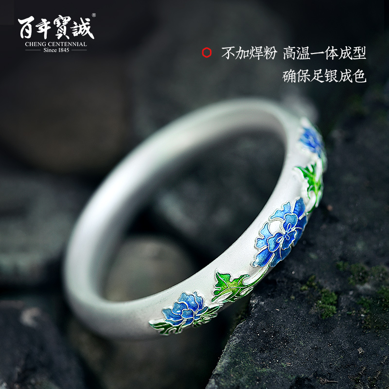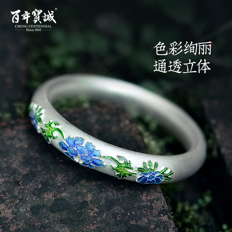Centuries-old Baocheng original foot silver Jingtai blue silver bracelet ethnic wind and ancient wind enamel colorful ancient method silver bracelet send mother