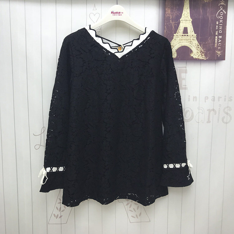 Huaitai maternity wear lace top spring and autumn new trendy mother mid-length version of pregnancy temperament wild top 83207