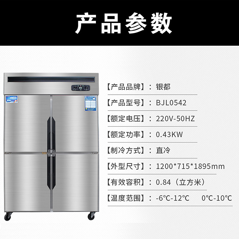 Yindu four-door freezer commercial display cabinet refrigerator fresh-keeping cabinet freezer hotel kitchen four-door refrigerator commercial