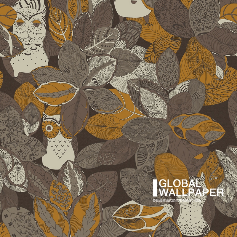 Spot Minimalist American Leaf Owl Pattern Living-room Bedroom Background Wall Wallpaper Upscale Eco-friendly Pure Paper