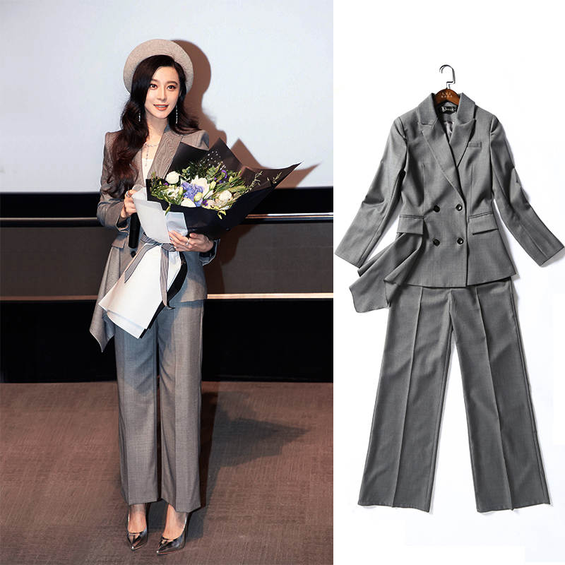 Spring and autumn new Fan Bingbing star with the same suit fashion commuter small coat temperament wide leg pants professional two-piece set