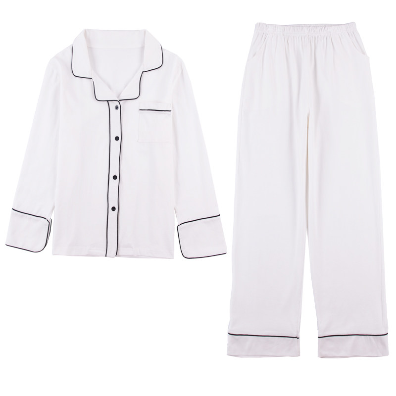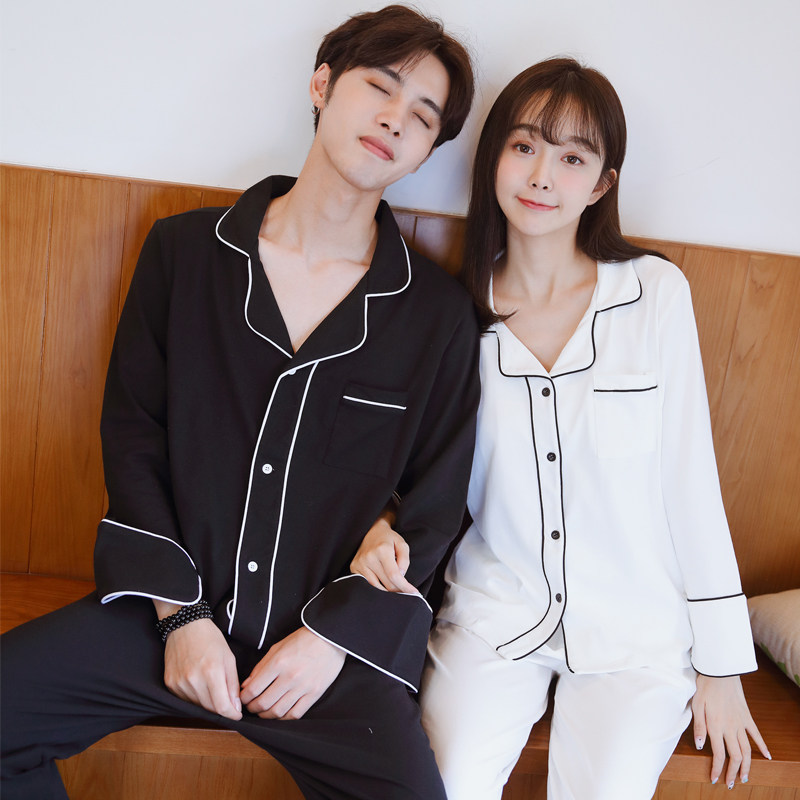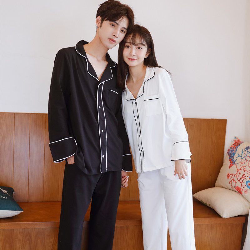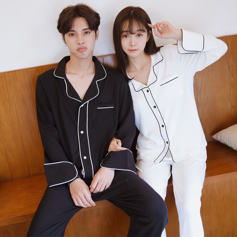 Couple pajamas women's spring autumn winter cotton long-sleeved Korean version loose student black and white thin home clothes men's suit