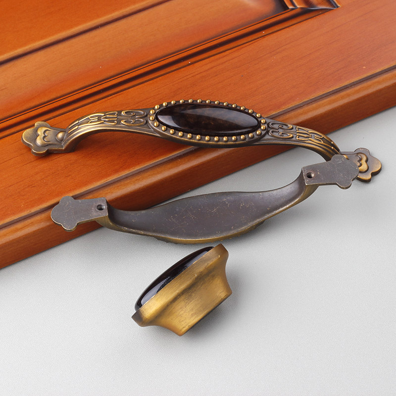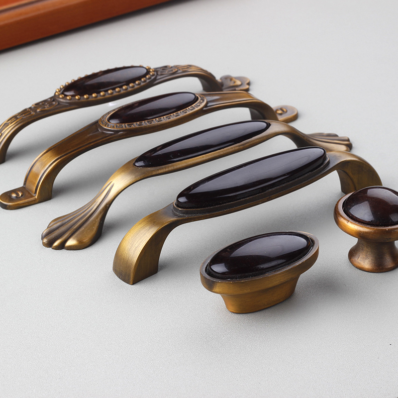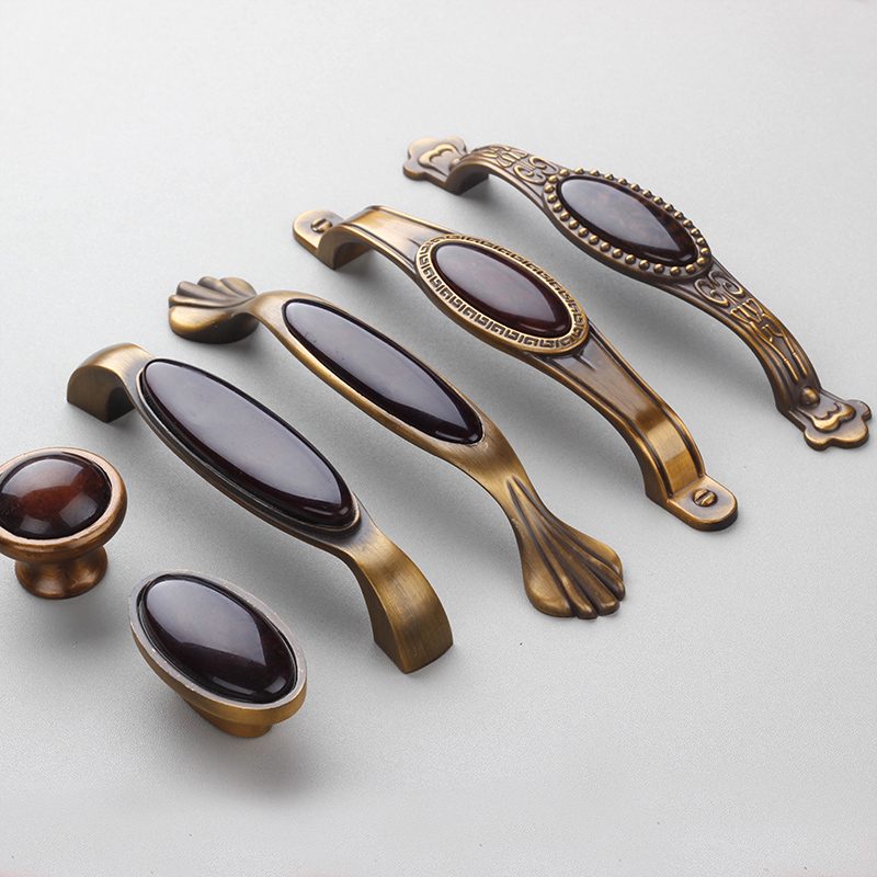 Huahua cabinet door handle American imitation antique yellow antique bronze handle European style overall cupboard cabinet drawers handle wardrobe door handle