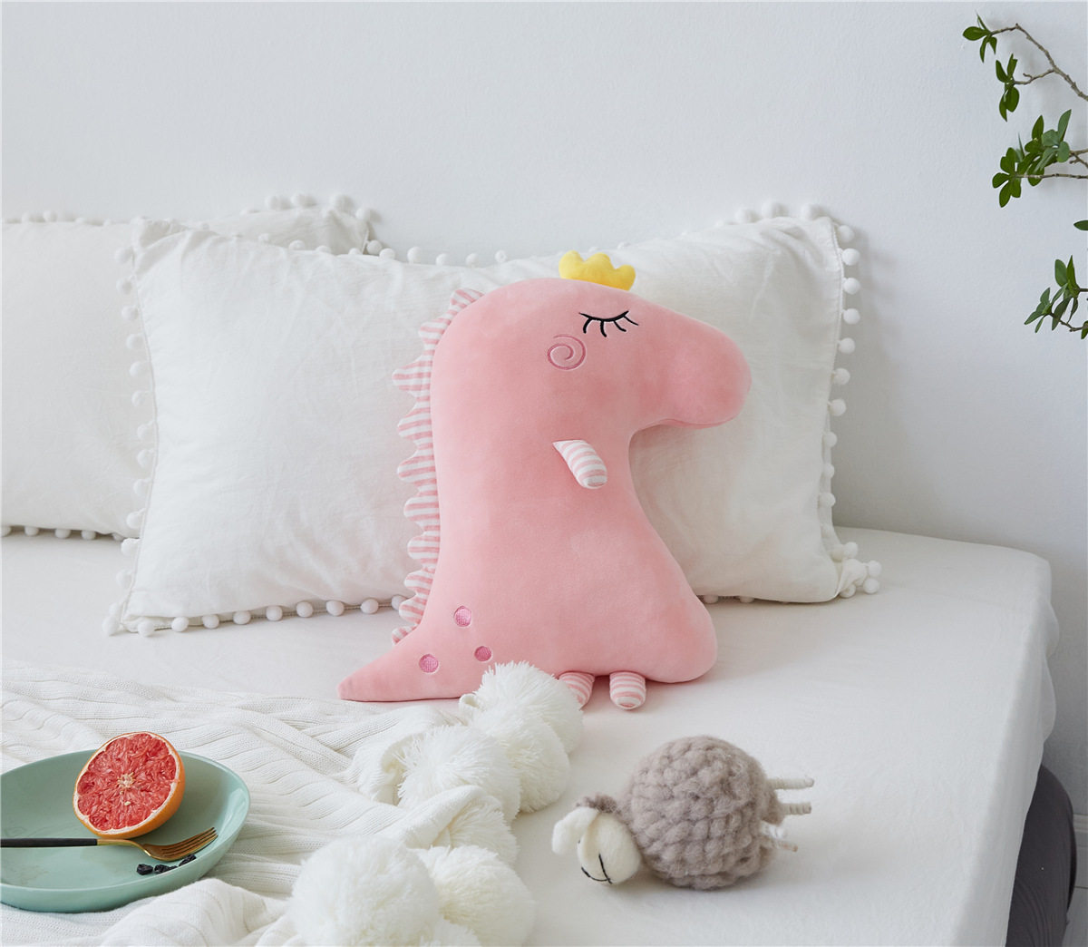 Korea ins cute crown cocoa dinosaur pillow cushion doll plush soft doll doll