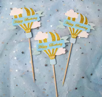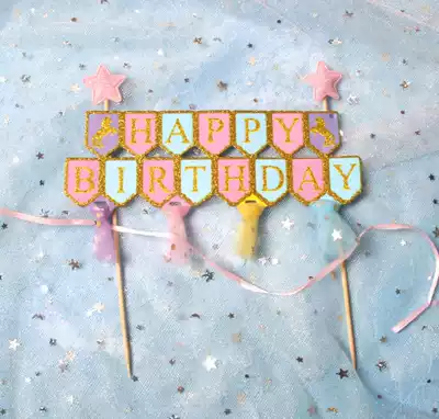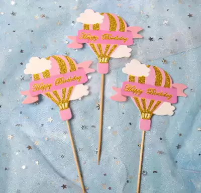 Balloon pull flag flash powder beautiful star mesh yarn dessert table birthday cake decoration plug cake ornaments
