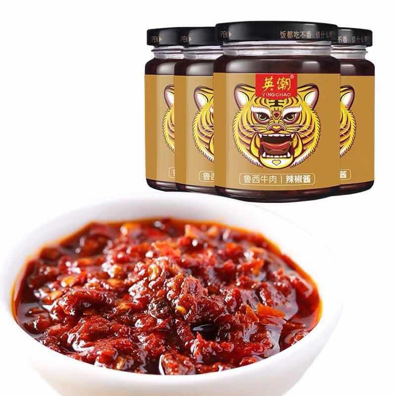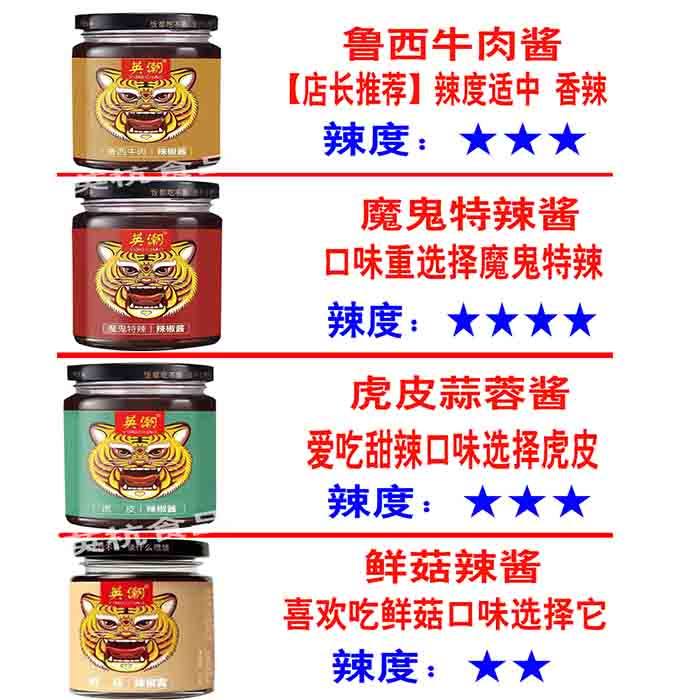 Yingchao Tiger State hot sauce Rusi beef Tiger list fresh pepper sauce 210g*4 bottles of combination Tiger Help network red pepper sauce tied