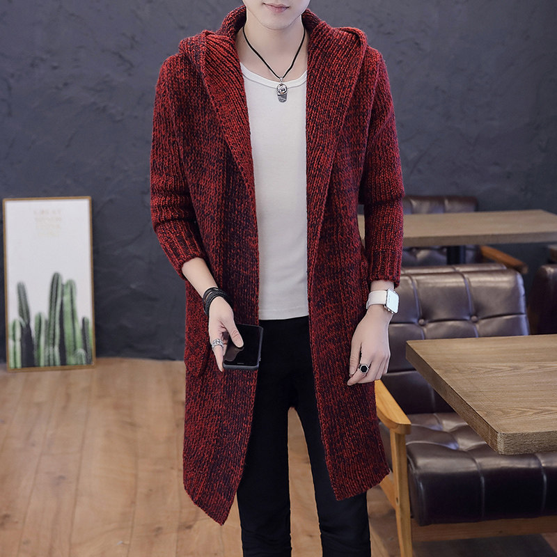 Mid-length Knitted Cardigan Outerwear Slim Korean Sweater Windbreaker Trendy Hooded Jacket Sweater Men's Autumn and Winter Clothes