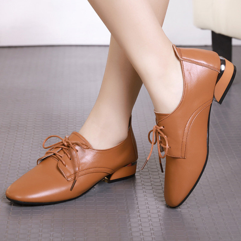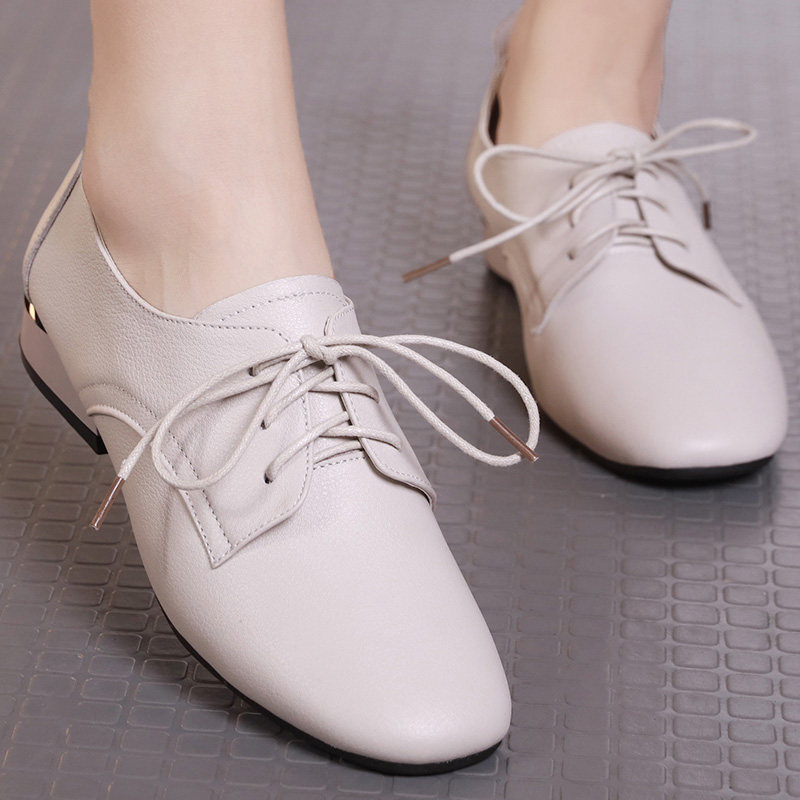 2021 autumn new flat bottom large size women's shoes 41-43 lace-up soft leather casual shoes leather four seasons shoes women