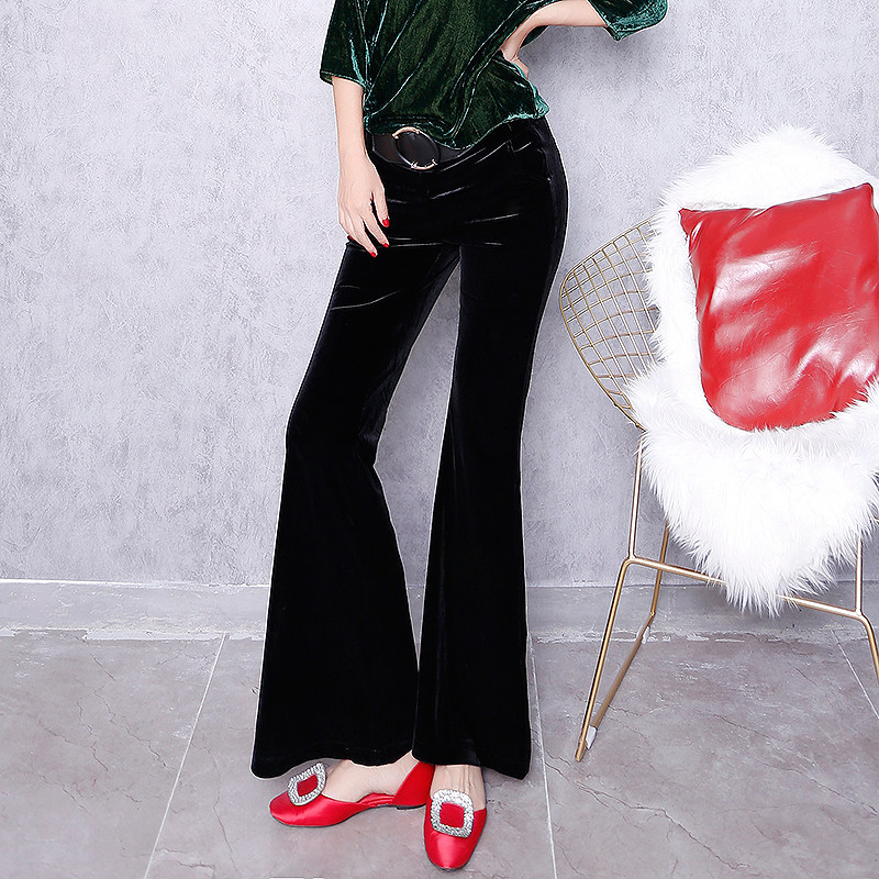 European station women's new 2020 spring flared pants women's high waist gold velvet pants wide leg pants slim fit and trendy