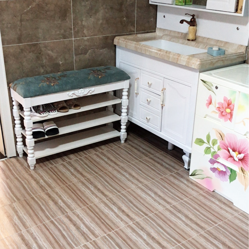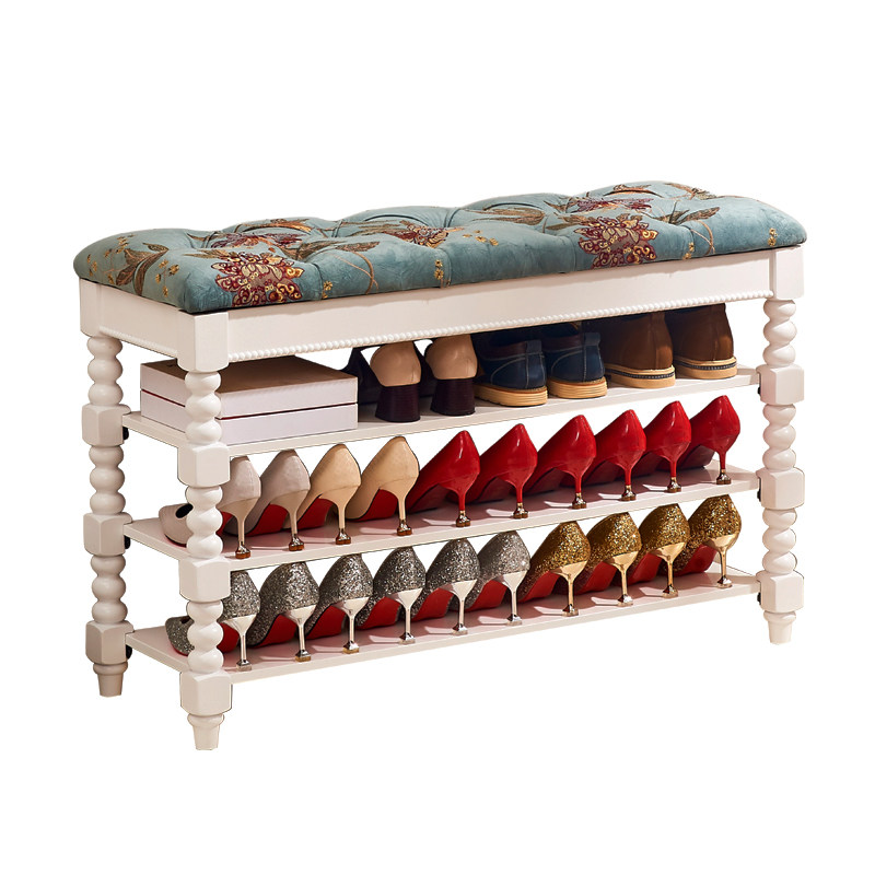 American-style solid wood three-layer fabric changing shoe stool shoe cabinet storage stool Nordic white can sit shoe rack leather shoe stool
