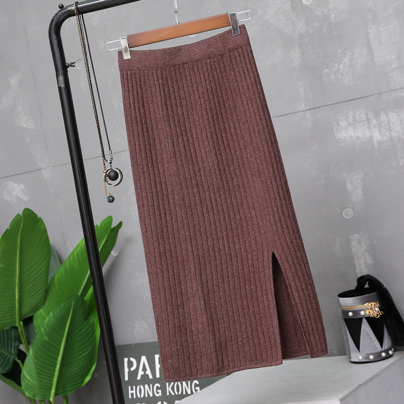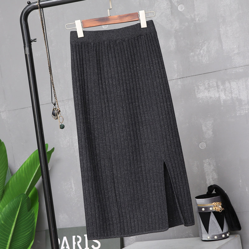 Fashion knit skirt women's winter 2022 spring and autumn new ins super fire split step wrap hip pleated long skirt