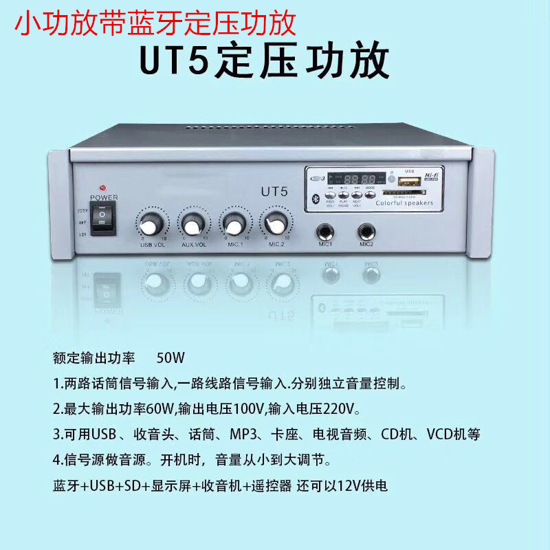 Power amplifier UT5 constant pressure 50W with suction top horn sound column background music intelligent dance room with remote control connecting Bluetooth