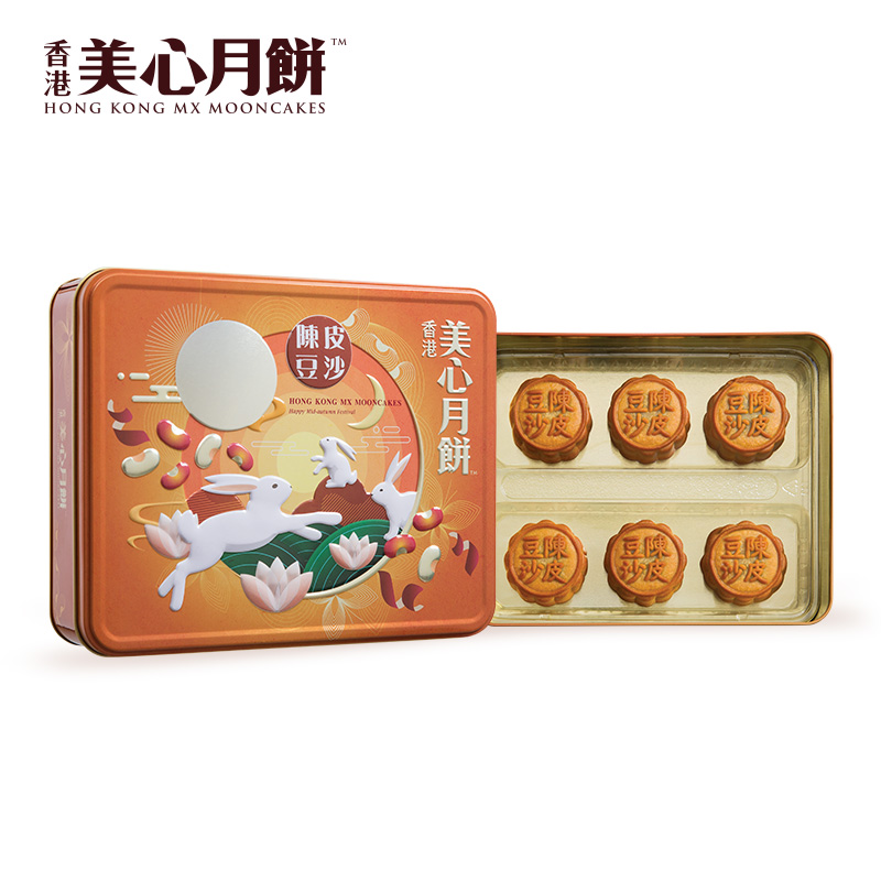 China Hong Kong Merry Orange Peel Bean Paste Mooncake Gift Box Port Style Wide Mid-Autumn Festival Special Delivery Gift Items Food