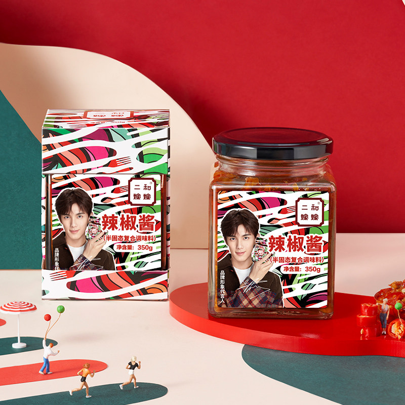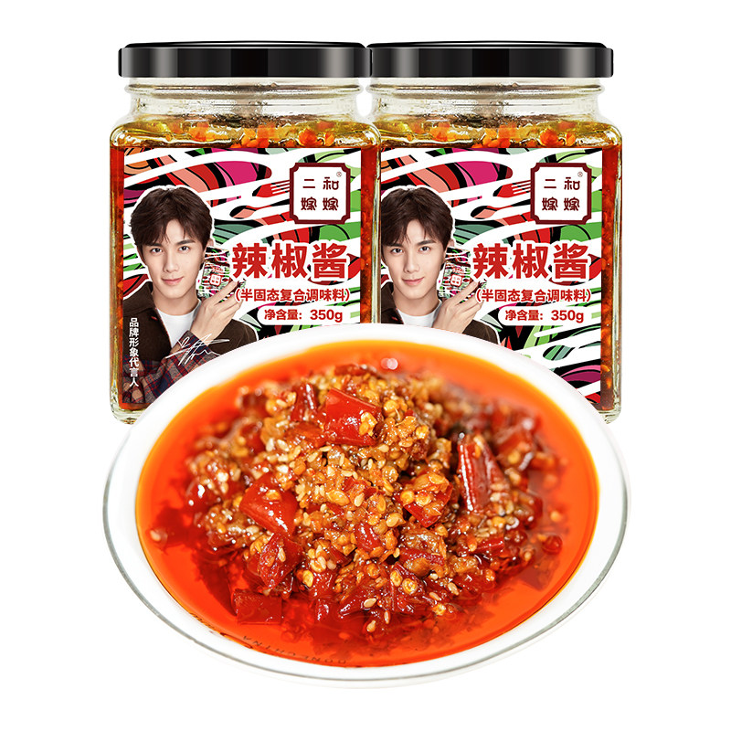 Two and married off chili sauce Wuhan features Specialty Seasoned Seasonings Ultra Spicy Millet Peppery Sauce 350g Large Gift Box Dress