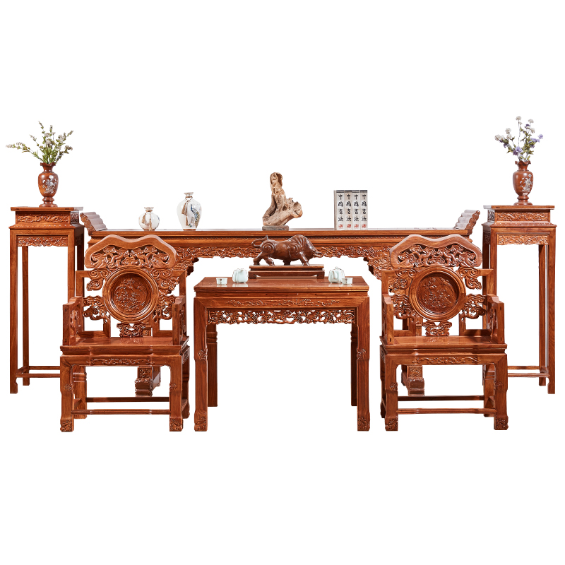 Chinese Red Wood Middle Hall Six Pieces Combination Solid Wood Hall Family Innate Hedgehog Purple Sandalwood For Table Africa Flower Pear Wood Strips Case