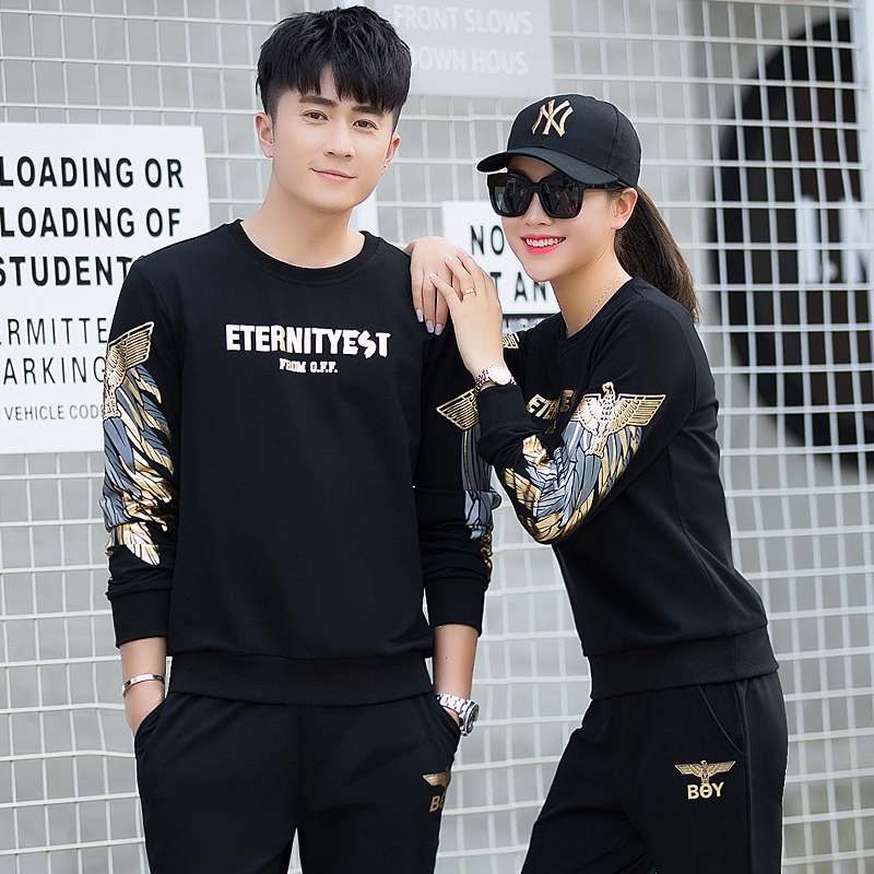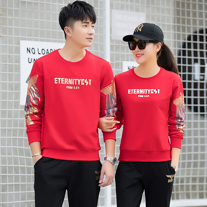 Lovers' clothing autumn clothing 2022 new spring and autumn season Korean version sports suit men's temperament round thick cotton T clothing trend