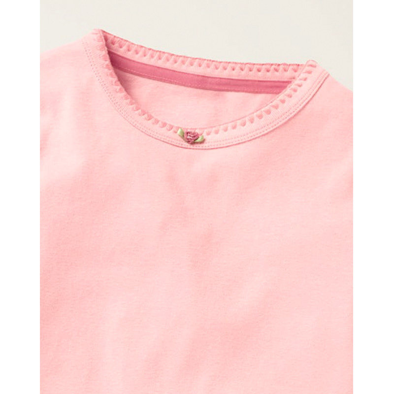 MiniBodent-shirt Soft Pure Color Round Collar Lace Trim Long Sleeves Brief Comfort UK Straight Camping Children