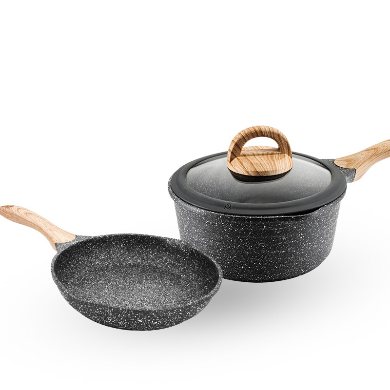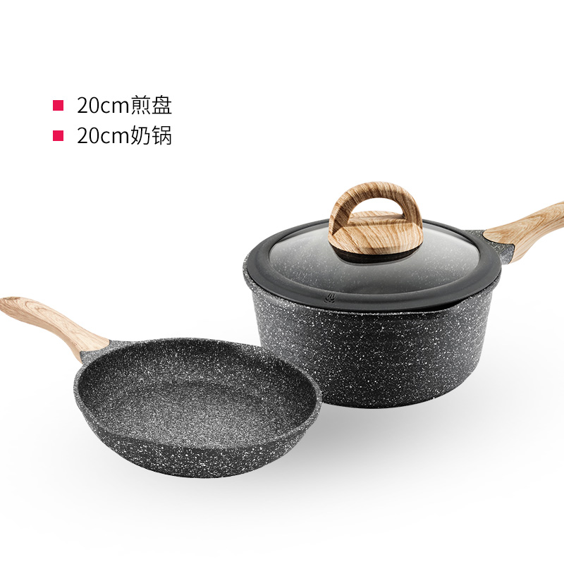 Jeetee medical stone not stained with pan sets 2 pieces set 20CM frying pan flat bottom pan 20CM milk pan