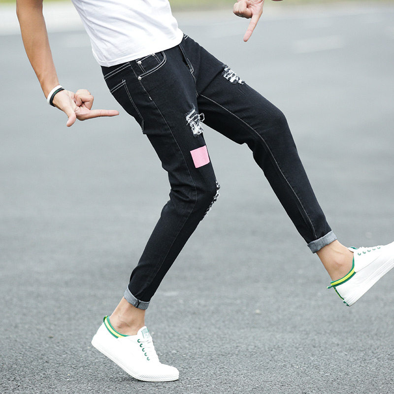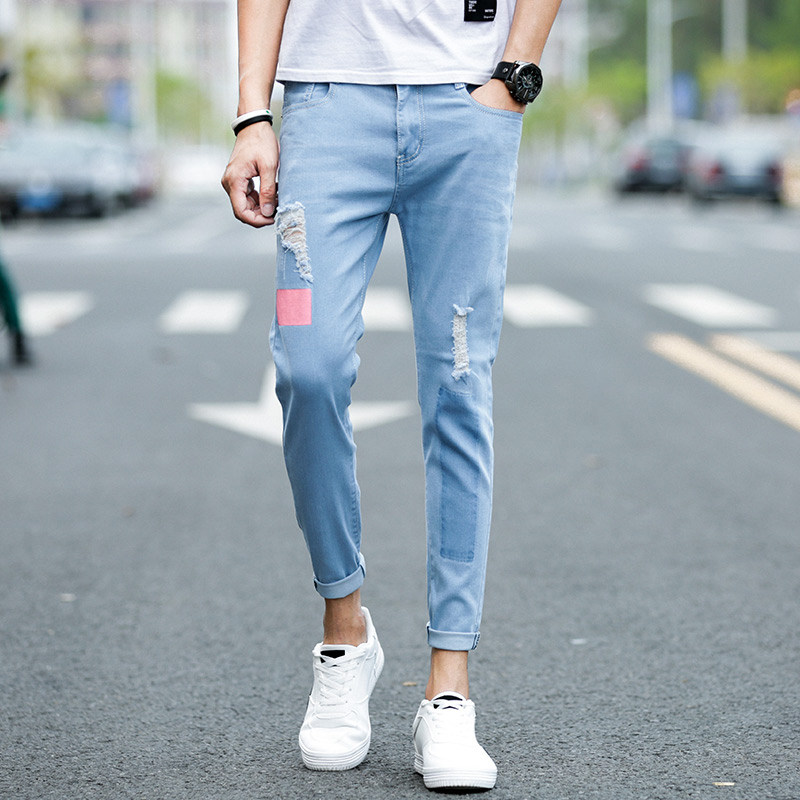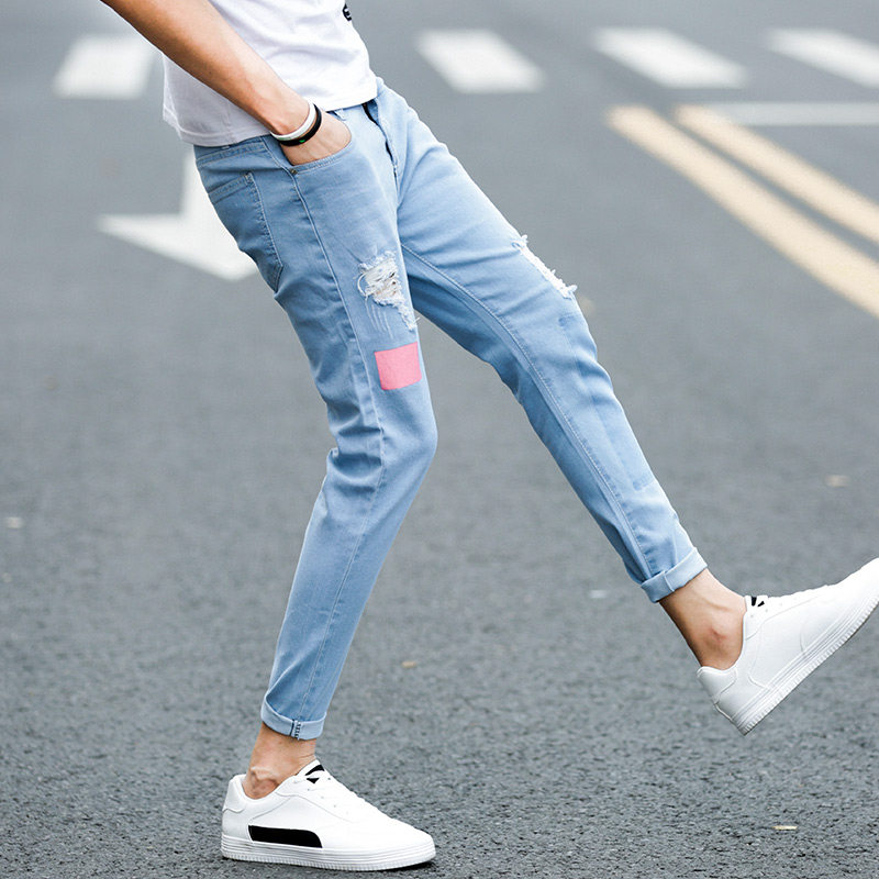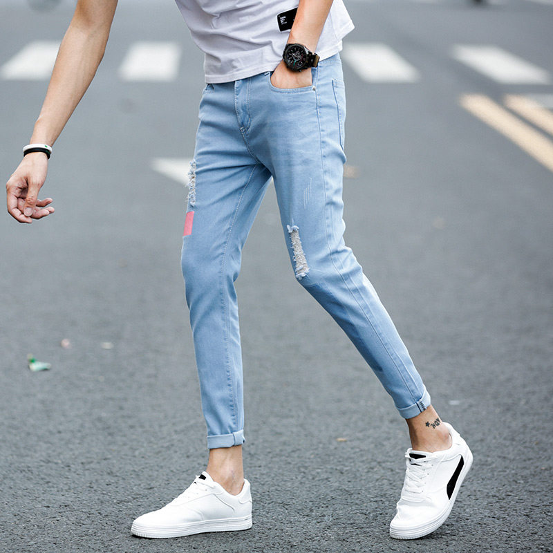 Korean version of the hole beggar nine-point jeans men's autumn new 2020 slim teen student cigarette tube pants