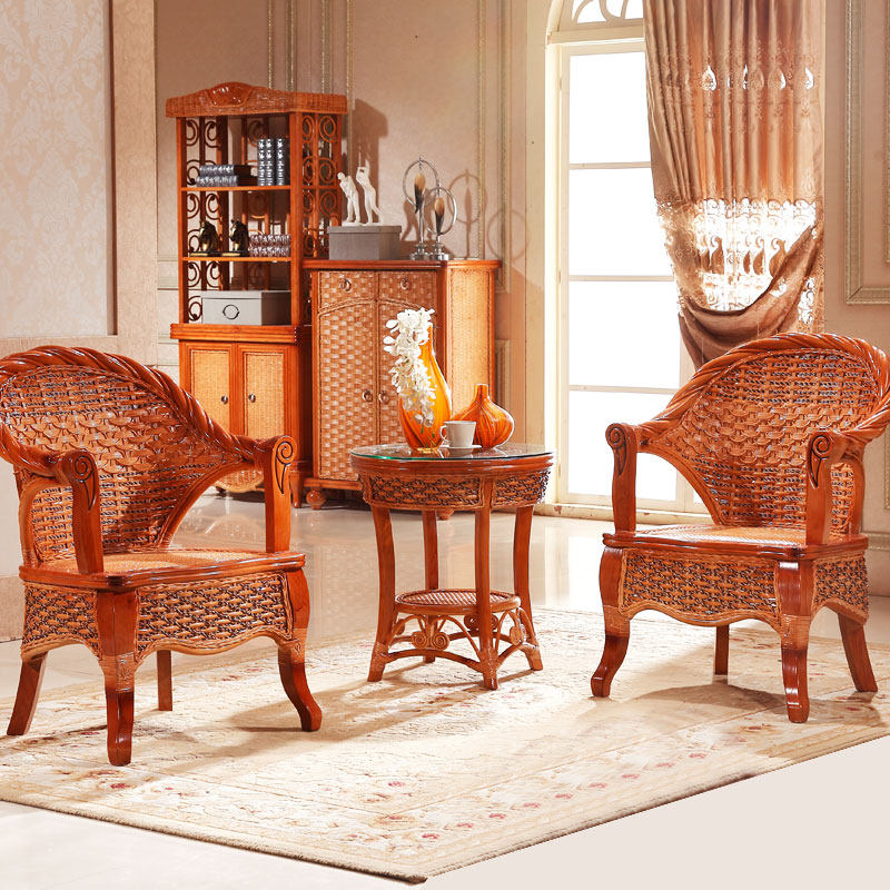 Special Price Rattan Chair Three Sets Coffee Room Balcony Table And Chairs Combination Natural Vines Chair Tea Table Patio Courtyard Rattan LEISURE CHAIR-TAOBAO