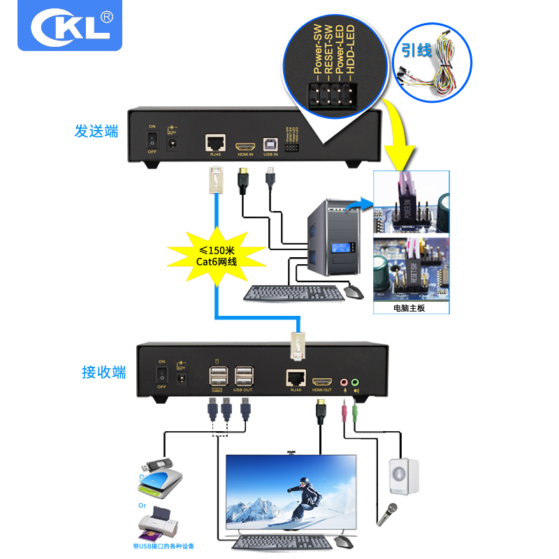 KVM Extender HDMI Video Keyboard and Mouse Signal Amplifier Extends 150 m CKL-150HU with a single network cable