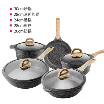 Jeetee Maifanshi Non-stick pan Set 5-piece Large wok Deep frying pan Soup pot Pan Milk pot
