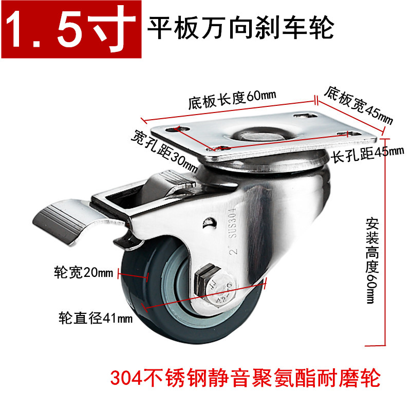 Thickened 304 stainless steel castors 1 5 inch 2 inch load type universal wheel mute abrasion resistant polyurethane PU wheel