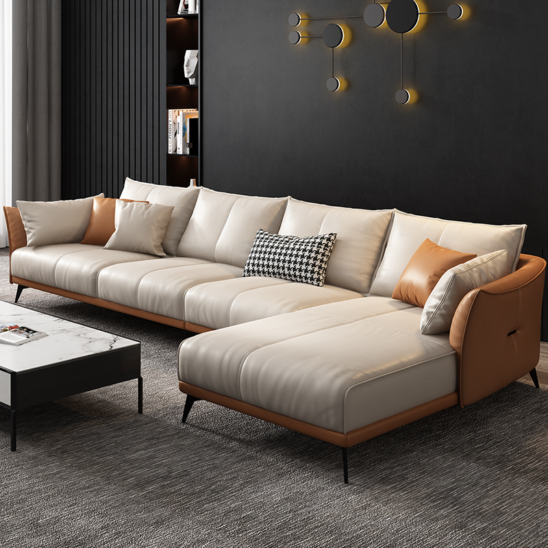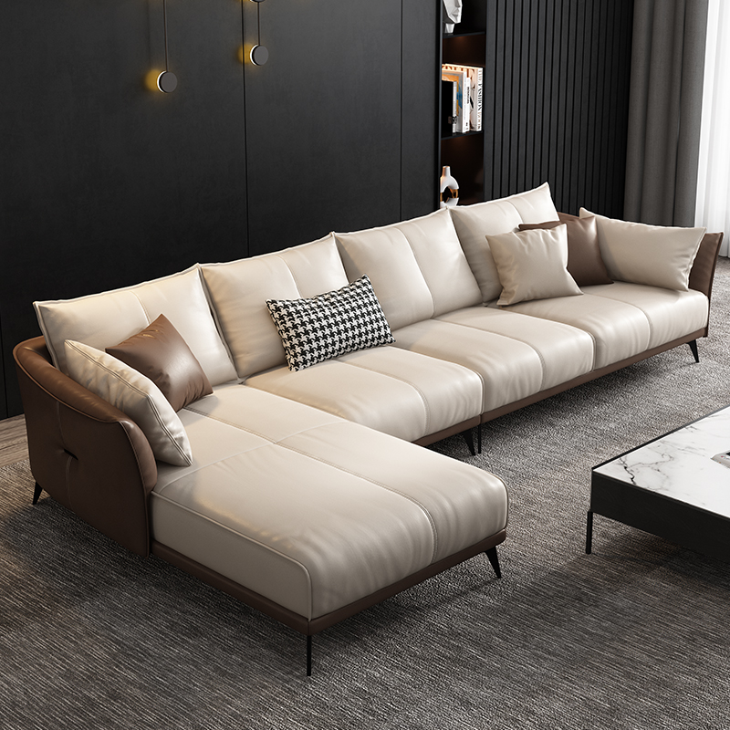 Meibo modern leather light luxury corner sofa first layer cowhide art sofa living room set up small apartment furniture
