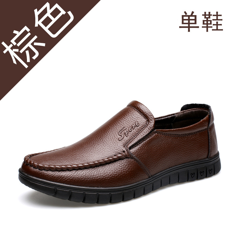 Leather shoes men's leather large size winter round head plus velvet breathable non-slip father non-slip soft bottom middle-aged and elderly father shoes