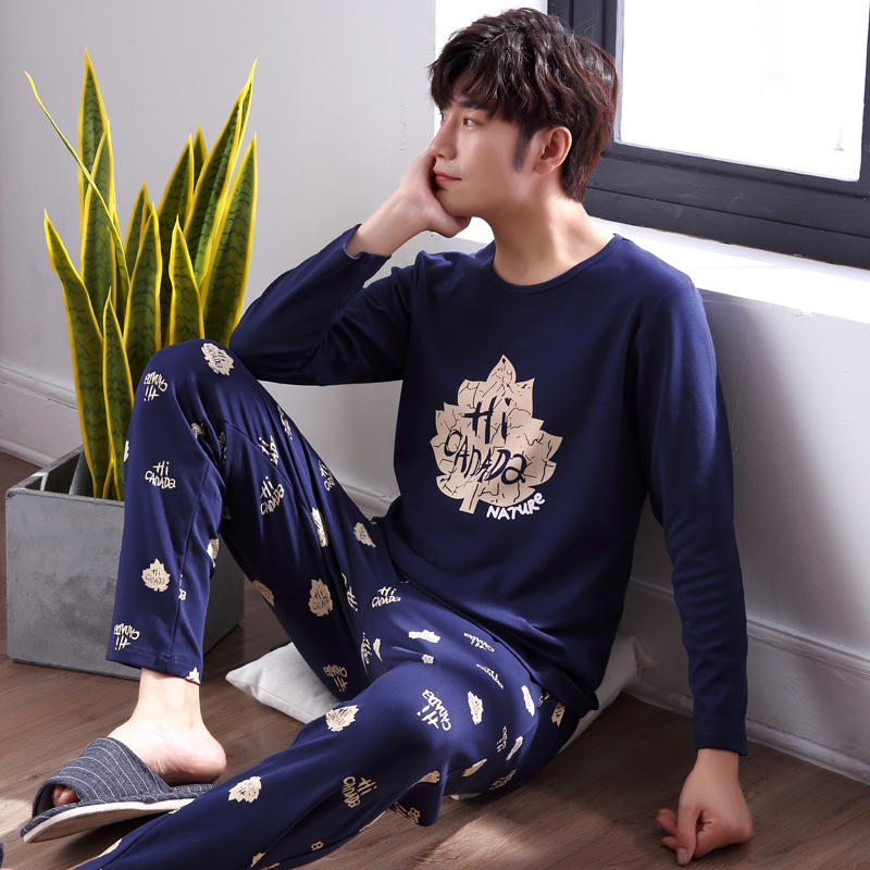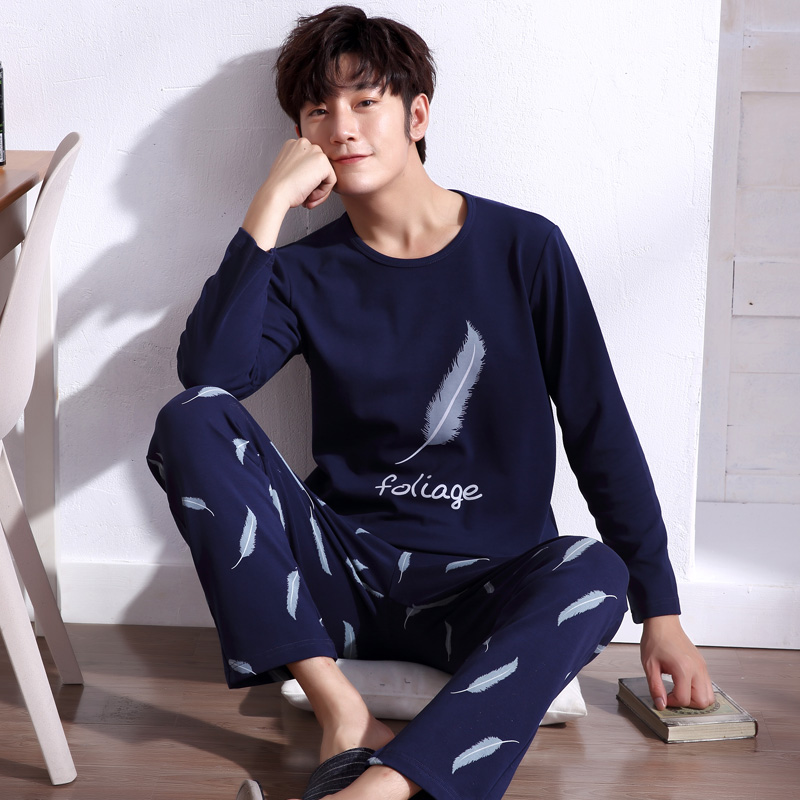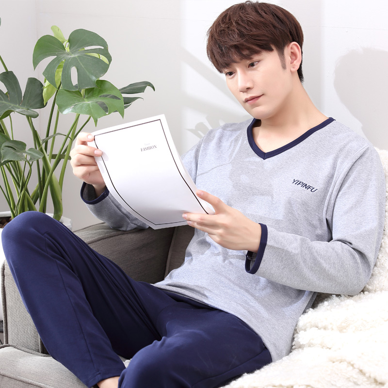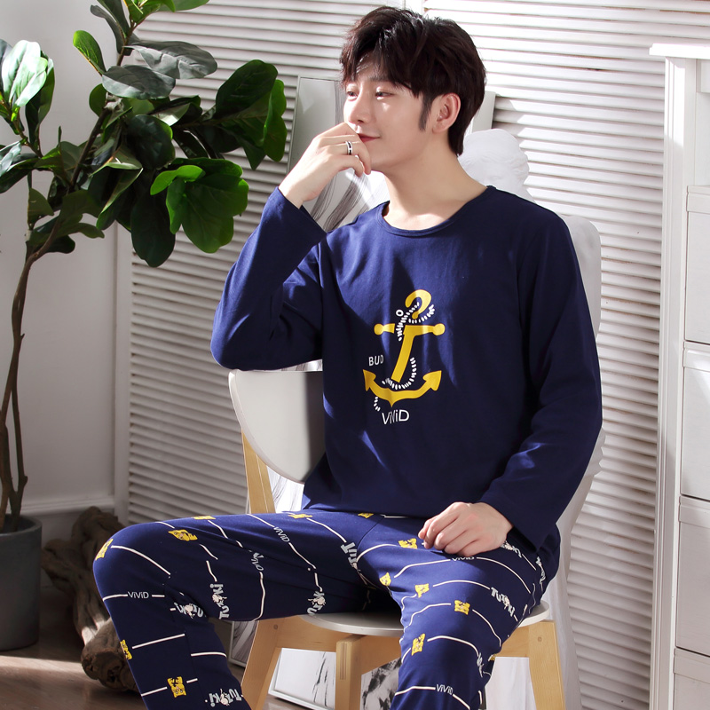 Autumn pajamas men's long-sleeved cotton cotton fat plus fat plus size middle-aged father spring and autumn men's home clothes