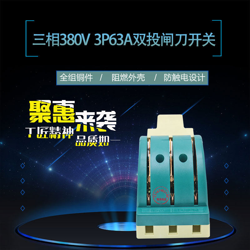 3P63A double throw switch 380v power knife gate three - phase two - way conversion load isolation switch copper