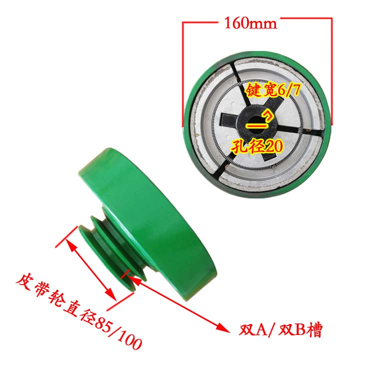 Double B groove, outer diameter 160, hole diameter 25, pulley 85, double A groove, outer diameter 160, hole diameter 25, pulley 85, double B groove, outer diameter 160, hole diameter 25, pulley 10