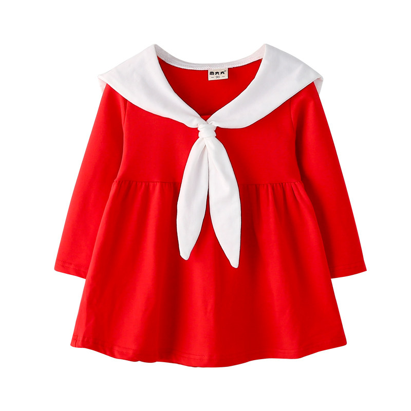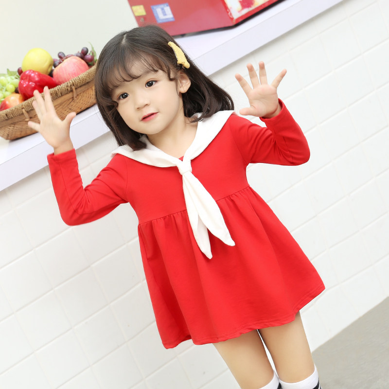 Girls ' skirts spring new children's college style dress cute female baby navy wind long sleeve short skirt